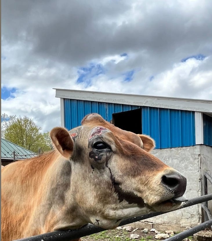 Ruthie was born on a dairy farm but was surrendered to sanctuary when she was just 3 days old because she was too small to be useful to the farm. She wouldn't have been able to produce enough milk for them to profit, so they did not want to keep her. Her small stature is what saved her life. We’ve heard this type of story many times and have residents here with similar stories, who narrowly avoided slaughter due to being too small for profit, including pig resident Marsha. Ruthie joins the company of our fellow dairy cow rescues like Heathcliff, Woody, Juniper, and Colin.